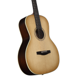 Only our finest, wonderfully quartersawn and silked Sitka, as well as hand selected African Mahogany is used in Laureate Series. The stiffness and quality of the tops allow us to thickness sand them just a tad thinner to help heighten response. Backs and sides are cut from the best East Indian Rosewood and African Mahogany that comes into our possession; bookmatched with perfect coloring.